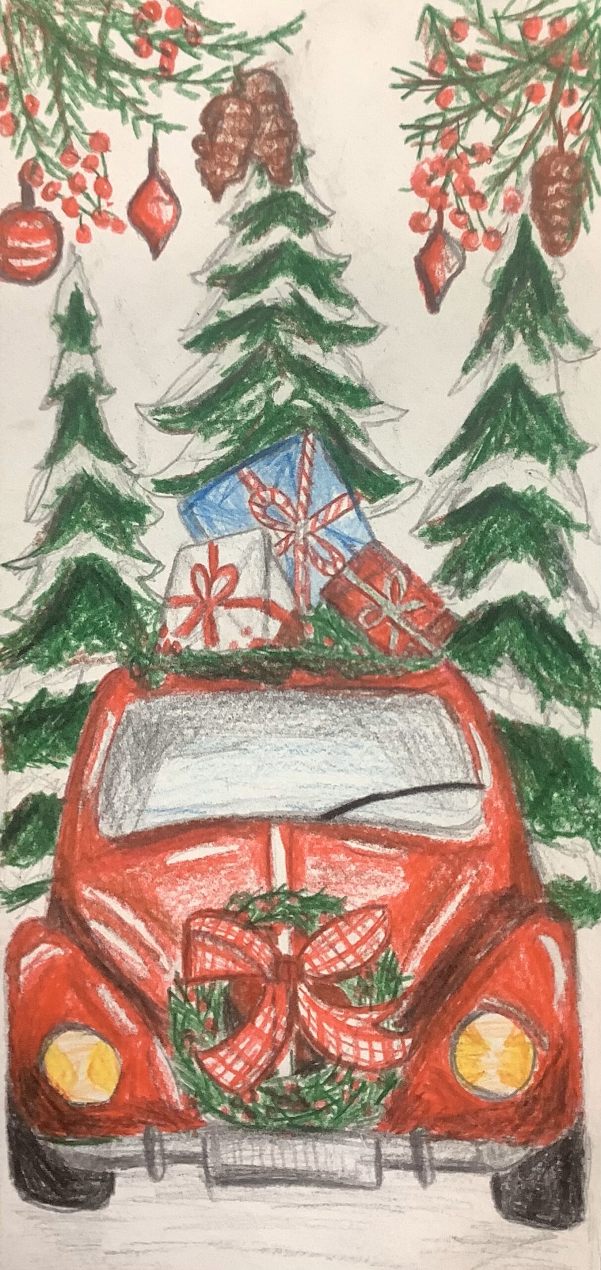 Das Siegermotiv des mit Geschenken beladenen roten Autos war letztes Jahr auf die Weihnachtskarten der Theodor-Heuss-Realschule gedruckt worden.