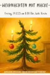 Die Fachschaft Religion lädt die Schulgemeinschaft unserer Theodor-Heuss-Realschule Walldorf herzlich zum diesjährigen Weihnachtsgottesdienst am 19.12.25 um 8.00 Uhr in die Katholische Kirche Walldorf ein.