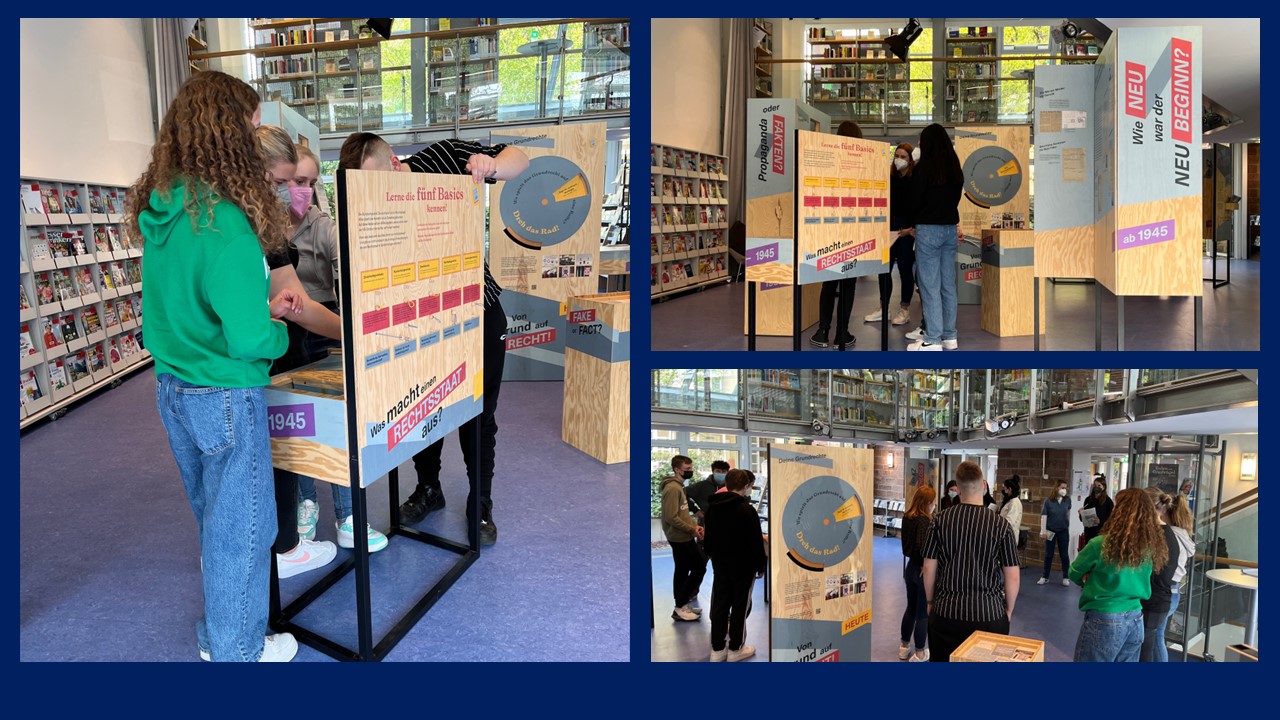 „Die Exkursion in die Stadtbücherei war ein lehrreicher Ausflug für uns. Es war auch etwas Neues dank den mehreren Stationen, an denen wir arbeiten konnten. Es war auch sehr interessant, die Politik mit der Vergangenheit und heute zu vergleichen und über die Ausgrenzung mehr zu erfahren“.