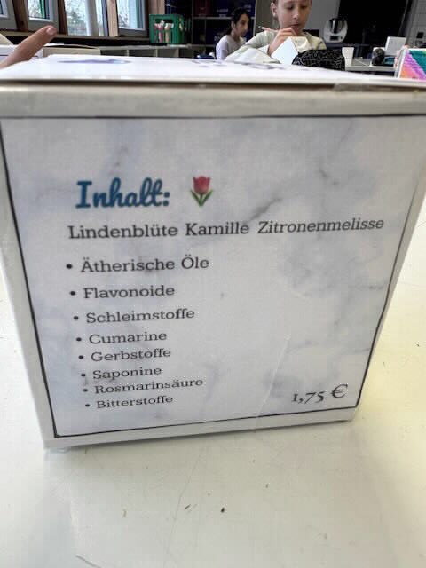 Ein weiteres Highlight war die individuelle Zusammenstellung eines eigenen Heilkräutertees. Nach einer intensiven Einführung in die Eigenschaften verschiedener Kräuter hatten die Kinder die Möglichkeit, ihre eigenen Teemischungen zu kreieren – ganz im Sinne der alten Kräuterkundigen.