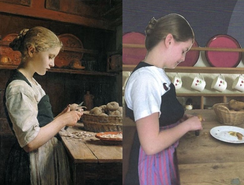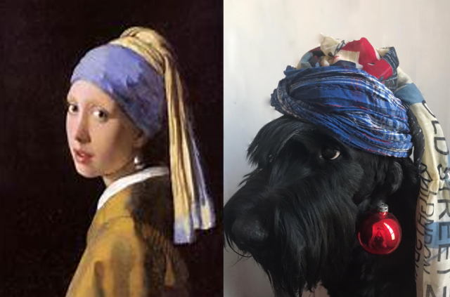Dabei sollten die Werke großer Malerinnen und Maler nicht 1:1 kopiert werden, sondern Improvisationstalent war hier gefragt. Tücher, Weihnachtskugeln, Papierschnipsel, alte Kleidung und Bücher kamen zum Einsatz und auch die passende Mimik musste vor dem Spiegel geübt werden. Hier ein kleiner Einblick in die originellen Ergebnisse unserer Schülerinnen und Schüler.